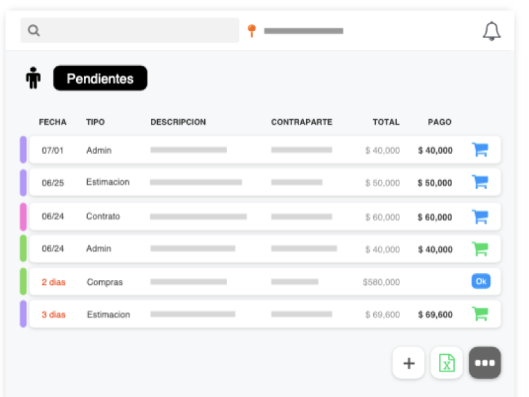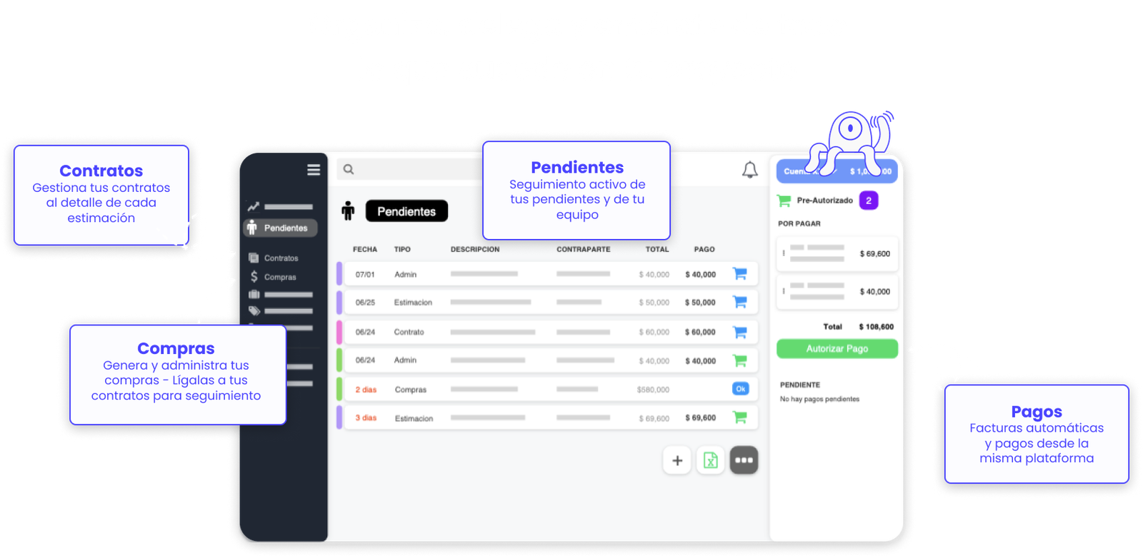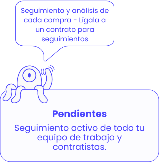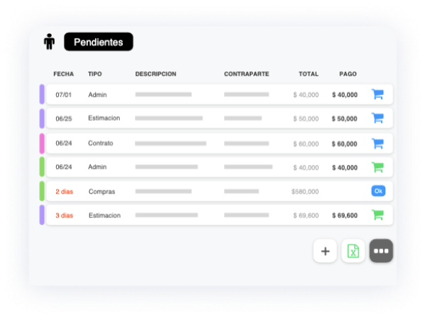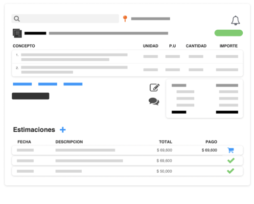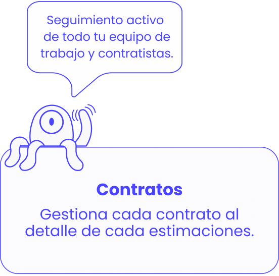 Activamente gestiona cada contrato y sus estimaciones, así como tus requisiciones y compras. Sencillamente supervisa tiempos de entrega y avances.